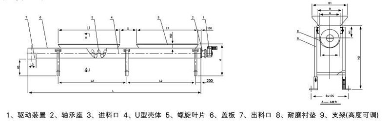 输送方向由螺旋叶片的螺旋方向和电机的旋转方向确定,可实