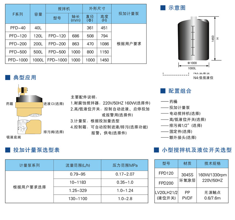 适用计量泵容量:从0.02L/h到1200L/h