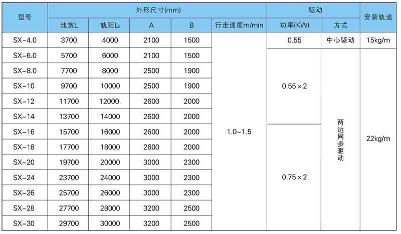 SX型虹吸式吸泥机是沉淀池常用的机械排泥装置之一。广泛适用于给排水工程设置于地表或半地下的平流沉淀池沉积污泥的刮吸排除,尤其适用于斜管(板)矩形沉淀池的沉淀污泥排除。