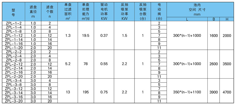 纤维转盘过滤机的主要性能参数: