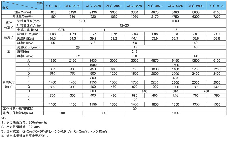 处理量Q<1080m3/h的,池体可采用钢制,Q≥1080m3/h的一般为混凝土结构;